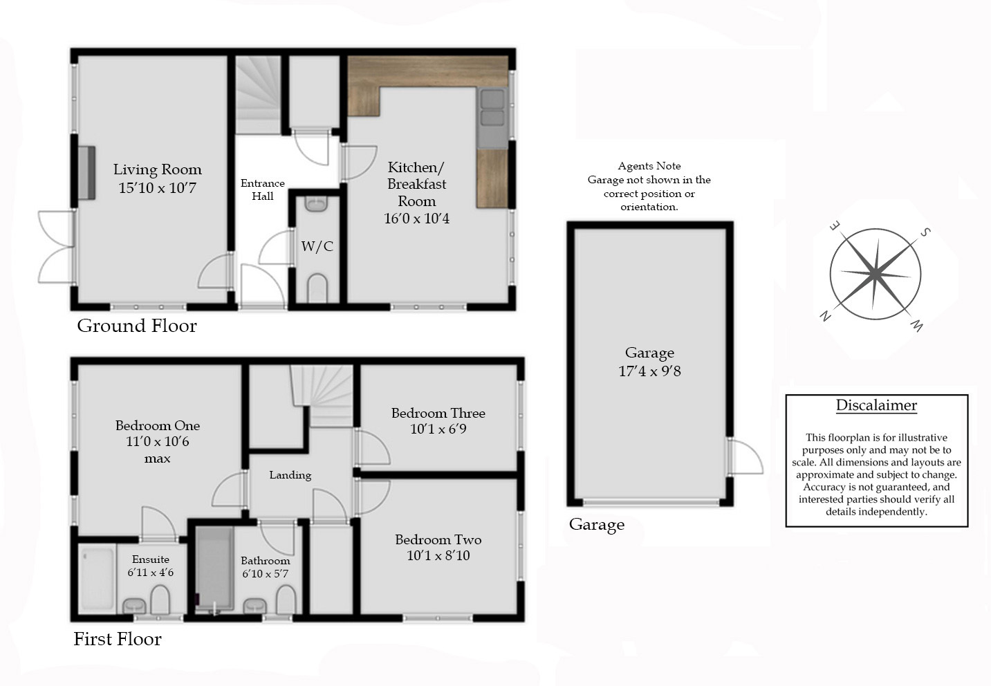 Ensuite - fitted suite comprising of shower cubicle with power shower, low level w/c with concealed cistern, wash hand basin with mixer tap, heated ladder towel rail, wooden style flooring, obscured double glazed window to front.