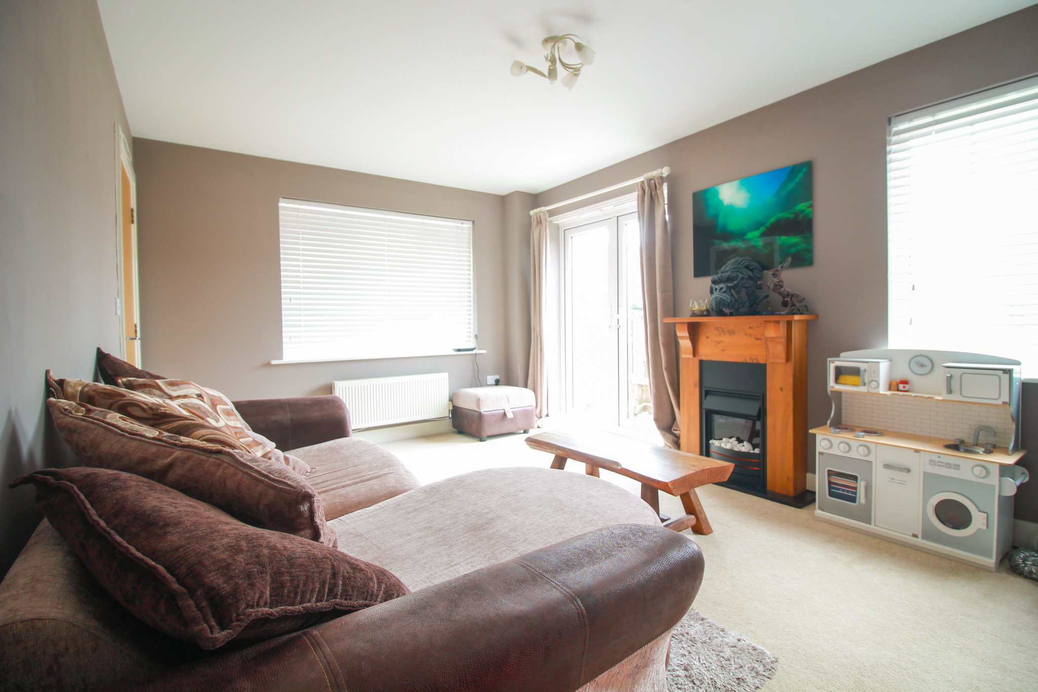 Living Room - Feature electric fireplace, patio doors opening to rear, double glazed windows to front and side, radiators, television point, telephone point.